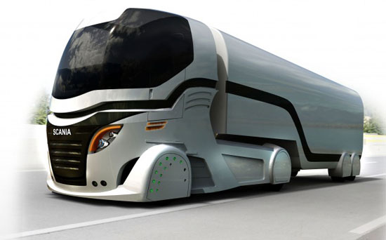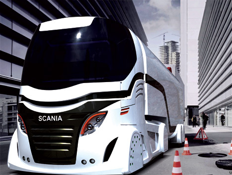BulletTruckAirFlow is hoping the BulletTruck will shape the future of trucking. AirFlow is working to design the world’s most functional, aerodynamic truck. This summer, engineers drive the prototype from Connecticut to California.“We loaded in Connecticut and our first stop was in Tracy, California. We ran into 35 mph 3/4 headwinds all the way through Wyoming and 40 mph crosswinds traveling through Utah,” the site states.In spite of the winds, the truck averaged an impressive 13.4 mpg! Peterbilt SentinalThe Peterbilt Sentinel truck concept is the new American dream long base truck. This project aims to deliver an extravagant and elegant truck with a more luxury touch based from simple structures and shapes. It pleases all types of truckers with its luxury chromed lines, massive classic style for the front grill and modular cab. It could soon be real. Man S German truck manufacturer MAN has teamed up with trailer builder Krone to build a futuristic, streamlined semi that could improve the fuel economy and range of long haulers by 25 percent.The Concept S and Aero Liner combo feature an integrated design featuring a smooth and rounded face, a rooftop spoiler closing the gap between tractor and trailer, and an aerodynamic hunchback roof not unlike that of the Toyota Prius.Further wind cheating moves include a tapering rear end, skirts over the wheels, slim video camera mounts replacing the huge side view mirrors typically seen on big rigs, and fuel tanks tucked inside the slick bodywork of the tractor. |